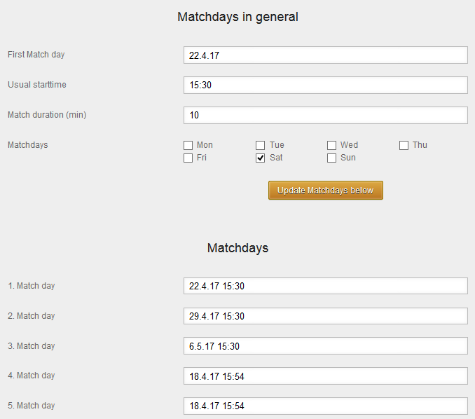 - Suppress match number: Normally users can see which number each match has got, i.e. when it will be played in the order of all matches. If this box is activated the number of the match will be hidden.